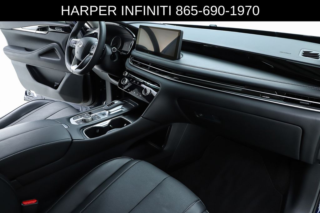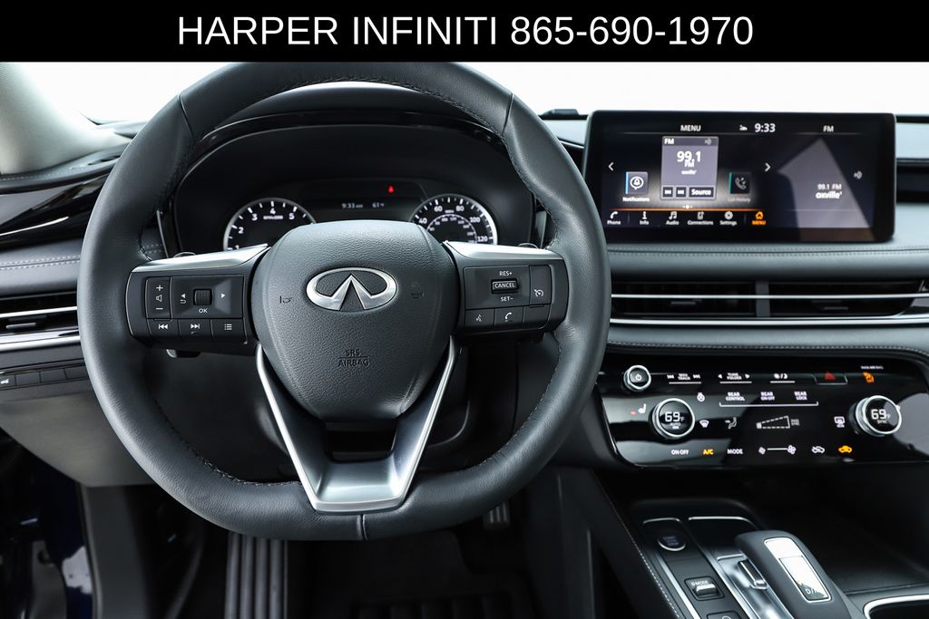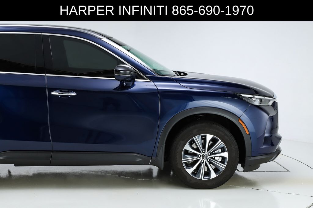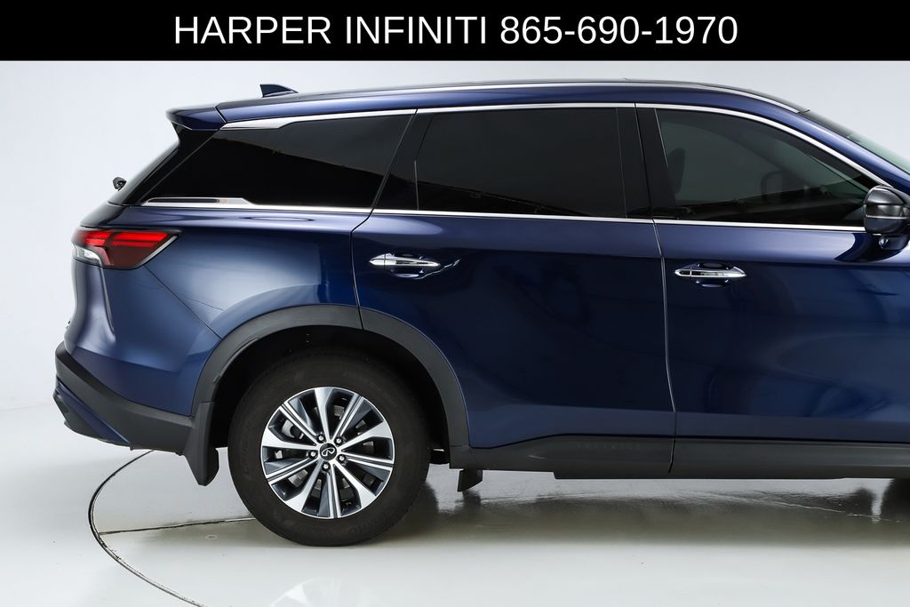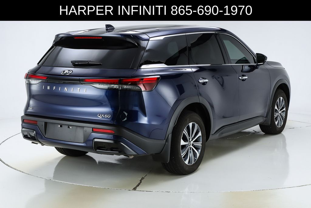 Harper INFINITI is pumped up to offer this stunning 2025 INFINITI QX60 in Grand Blue HARPER INFINITI believes in the quality of the vehicles we sell so well that we provide an UNLIMITED MILES, POWERTRAIN WARRANTY on every new and qualifying pre-owned vehicle it sells!!! This warranty is good at any ASE certified shop in the 48 continental United States!! Check out all these great options 3rd row seats: bench, 4-Wheel Disc Brakes, 9 Speakers, ABS brakes, Air Conditioning, Alloy wheels, AM/FM radio: SiriusXM, Auto High-beam Headlights, Auto-dimming Rear-View mirror, Automatic temperature control, Blind Spot Warning, Brake assist, Delay-off headlights, Driver door bin, Driver vanity mirror, Dual front impact airbags, Dual front side impact airbags, Electronic Stability Control, Four wheel independent suspension, Front anti-roll bar, Front Bucket Seats, Front dual zone A/C, Front reading lights, Fully automatic headlights, Heated door mirrors, Heated front seats, Heated steering wheel, Illuminated entry, Knee airbag, Leather Shift Knob, Leather steering wheel, Leather-Appointed Seating Surfaces, Low tire pressure warning, Memory seat, Occupant sensing airbag, Outside temperature display, Overhead airbag, Overhead console, Panic alarm, Passenger door bin, Passenger vanity mirror, Power door mirrors, Power driver seat, Power Liftgate, Power moonroof, Power passenger seat, Power steering, Power windows, Radio data system, Rain sensing wipers, Rear air conditioning, Rear anti-roll bar, Rear Parking Sensors, Rear reading lights, Rear side impact airbag, Rear window defroster, Rear window wiper, Reclining 3rd row seat, Remote keyless entry, Security system, Speed control, Speed-sensing steering, Speed-Sensitive Wipers, Split folding rear seat, Spoiler, Steering wheel mounted audio controls, Tachometer, Telescoping steering wheel, Tilt steering wheel, Traction control, Trip computer, Turn signal indicator mirrors, and Variably intermittent wipers.