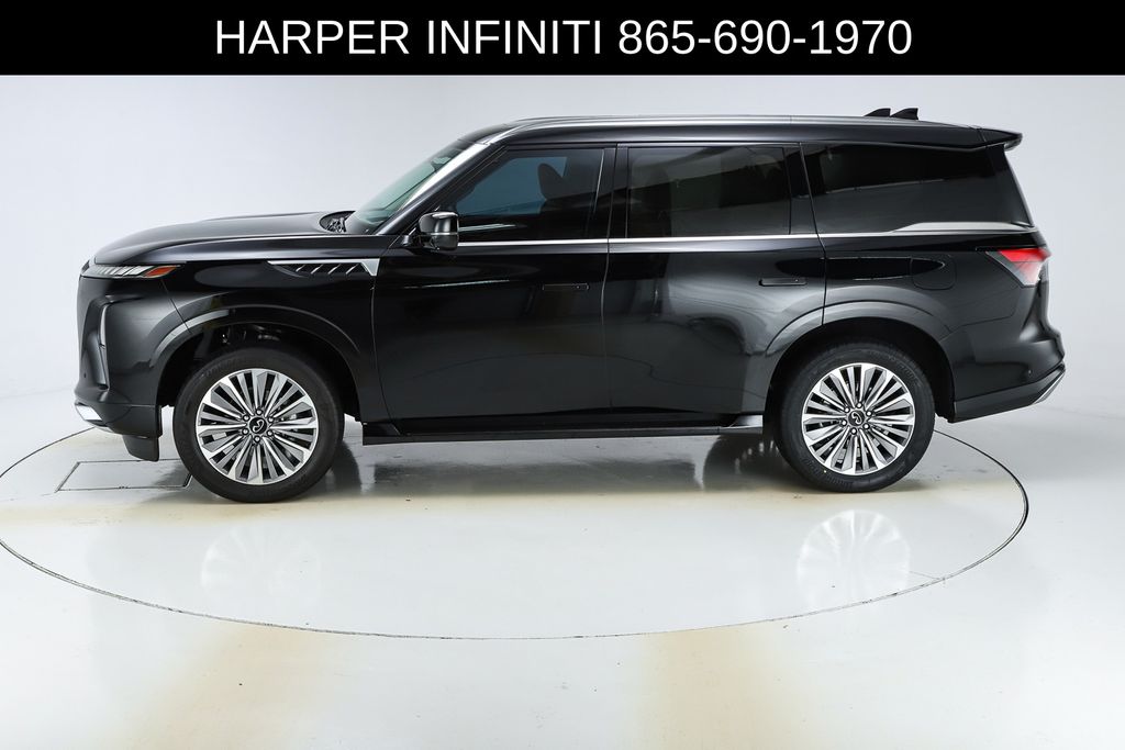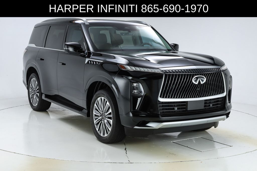 Harper INFINITI is excited to offer this stunning 2025 INFINITI QX80 in Black Obsidian HARPER INFINITI believes in the quality of the vehicles we sell so well that we provide an UNLIMITED MILES, POWERTRAIN WARRANTY on every new and qualifying pre-owned vehicle it sells!!! This warranty is good at any ASE certified shop in the 48 continental United States!! Check out all these great options 14 Speakers, 3rd row seats: bench, 4-Wheel Disc Brakes, ABS brakes, Adaptive suspension, Air Conditioning, Alloy wheels, AM/FM radio: SiriusXM with 360L, Anti-whiplash front head restraints, Apple CarPlay/Android Auto, Audio memory, Auto High-beam Headlights, Auto tilt-away steering wheel, Auto-dimming door mirrors, Auto-dimming Rear-View mirror, Auto-leveling suspension, Automatic temperature control, Brake assist, Bumpers: body-color, Climate Controlled Front Bucket Seats, Compass, Delay-off headlights, Driver door bin, Driver vanity mirror, Dual front impact airbags, Dual front side impact airbags, Electronic Stability Control, Emergency communication system: INFINITI InTouch, Four wheel independent suspension, Front anti-roll bar, Front Bucket Seats, Front Center Armrest, Front dual zone A/C, Front reading lights, Fully automatic headlights, Garage door transmitter: myQ Connected Garage, Heads-Up Display, Heated door mirrors, Heated front seats, Heated rear seats, Heated steering wheel, HVAC memory, Illuminated entry, Knee airbag, Leather Seating Surfaces, Leather steering wheel, Low tire pressure warning, Memory seat, Navigation system: Google Built-in, Occupant sensing airbag, Outside temperature display, Overhead airbag, Overhead console, Panic alarm, Passenger door bin, Passenger vanity mirror, Power door mirrors, Power driver seat, Power Liftgate, Power moonroof, Power passenger seat, Power steering, Power windows, Radio data system, Radio: Klipsch Premium Audio System w/14 Speakers, Rain sensing wipers, Rear air conditioning, Rear anti-roll bar, Rear reading lights, Rear seat center armrest, Rear window defroster, Rear window wiper, Reclining 3rd row seat, Remote keyless entry, Security system, Speed control, Speed-sensing steering, Split folding rear seat, Spoiler, Steering wheel memory, Steering wheel mounted audio controls, Tachometer, Telescoping steering wheel, Tilt steering wheel, Traction control, Trip computer, Turn signal indicator mirrors, Variably intermittent wipers, Ventilated front seats, Ventilated rear seats, and Wheels: 22" x 8" Cast Aluminum Alloy.