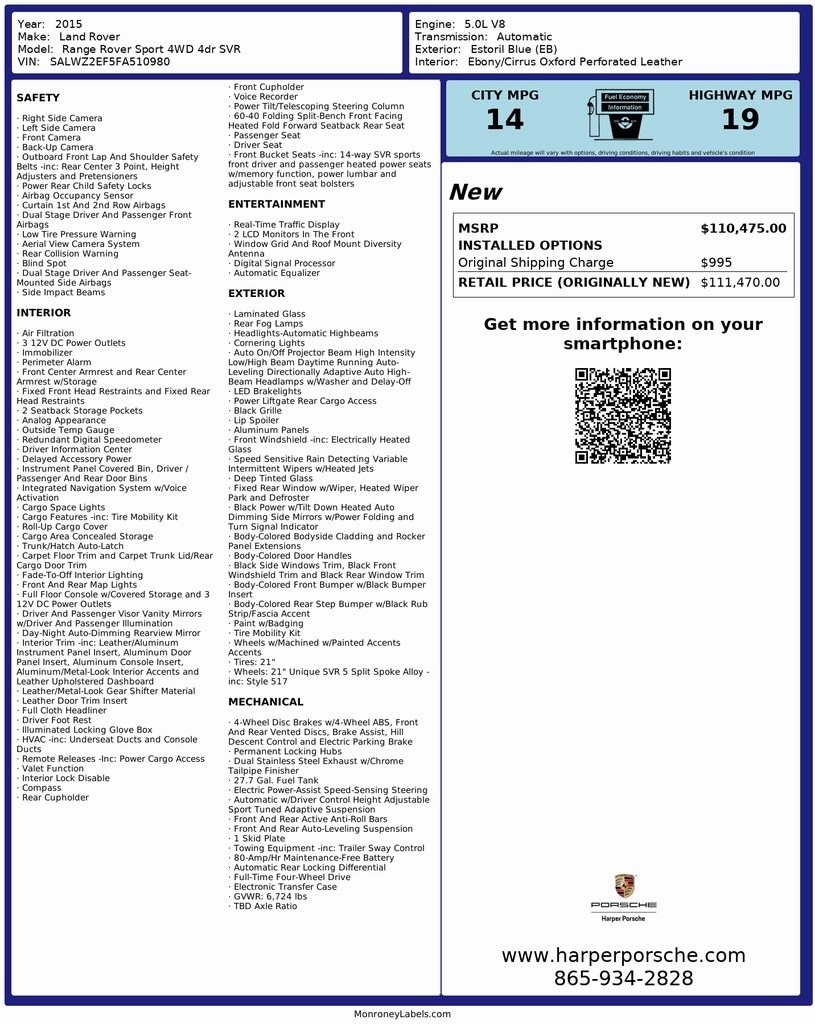 Inspected by our Porsche Certified technicians, all maintenance up to date, and extended vehicle service contracts are available for further peace of mind (if eligible). Our Pre-Owned vehicles are priced to market, making the transaction as transparent and hassle-free as possible. Please call Harper Porsche for details (865) 934-2828 or visit us online at www.harperporsche.com. Dealer not responsible for automated VIN populated options list. Buyer to verify specs with Sales Consultant. Come see why Harper has the easiest car buying experience in the South!