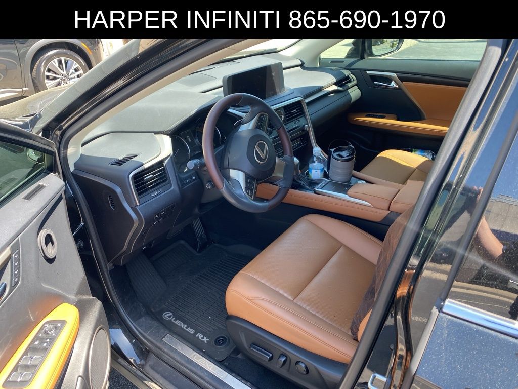 Harper Infiniti is excited to offer this stunning 2021 Lexus RX 350 in Black. HARPER INFINITI believes in the quality of the vehicles we sell so well that we provide an UNLIMITED MILES, POWERTRAIN WARRANTY on every new and qualifying pre-owned vehicle it sells!!! This warranty is good at any ASE certified shop in the 48 continental United States!! Check out all these great options - heated and ventilated front seats, 12.3" navigation system with premium Mark Levinson audio, intuitive parking assist with panoramic view monitor, tilt and slide moonroof, and luxurious wood and leather-wrapped heated steering wheel.