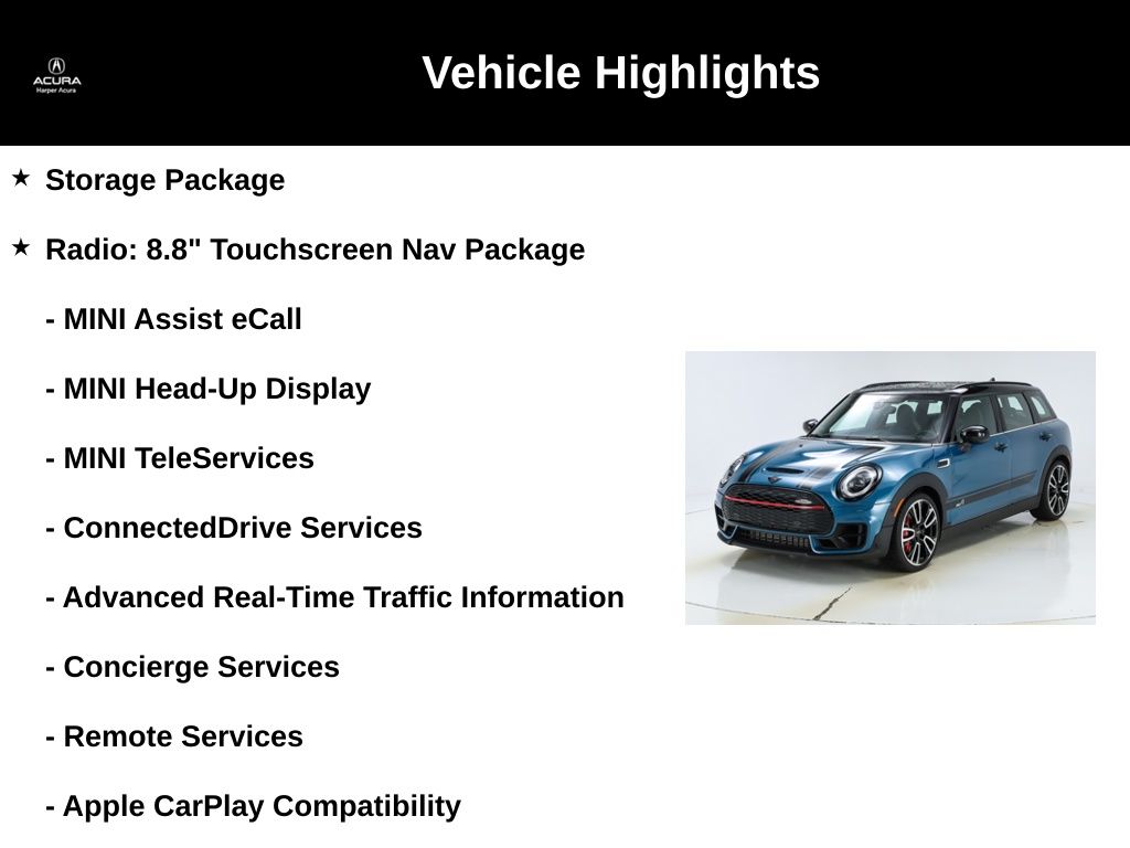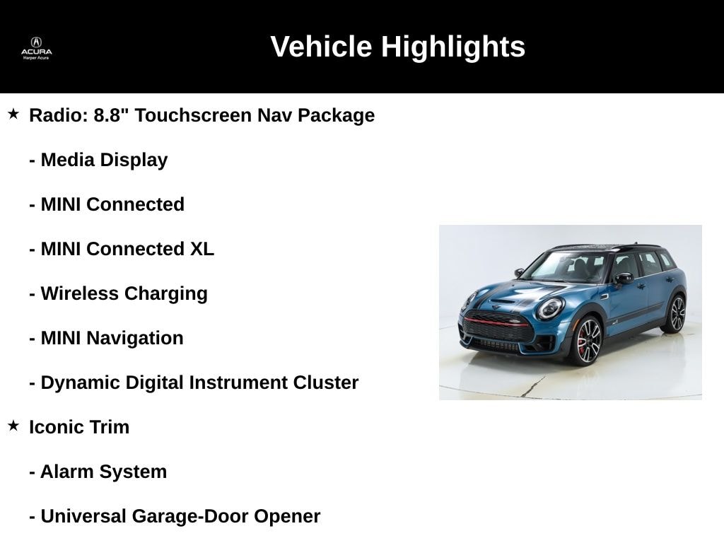 Whether you're commuting through the city or seeking out twisting country roads, this 2022 MINI John Cooper Works Clubman is the perfect companion. With its blend of iconic style, thrilling performance, and premium amenities, it's a vehicle that will ignite your passion for driving and leave a lasting impression.