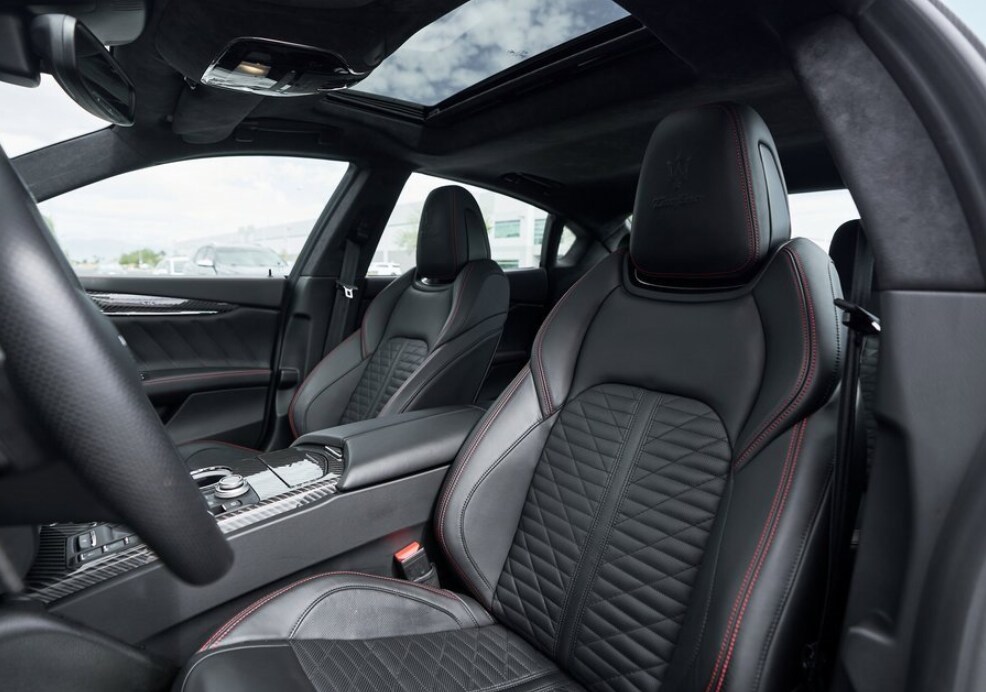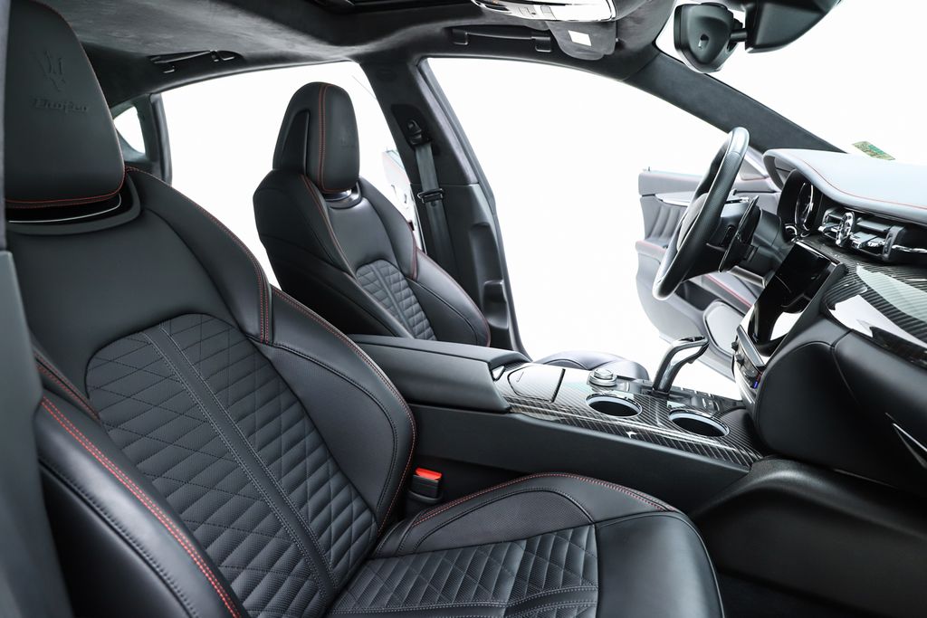 Check out all these great options Exterior Carbon Fiber Package, Interior Carbon Fiber Package (Carbon Fiber Door Sills and Carbon Fiber Paddle Shifters), 10 Speakers, 4-Wheel Disc Brakes, ABS brakes, Adaptive suspension, Adjustable pedals, Air Conditioning, Alloy wheels, AM/FM radio: SiriusXM, Anti-whiplash front head restraints, Apple CarPlay/Android Auto, Auto tilt-away steering wheel, Auto-dimming door mirrors, Auto-dimming Rear-View mirror, Automatic temperature control, Bowers & Wilkins 1280W Ultra Premium Audio System, Brake assist, Bumpers: body-color, Delay-off headlights, Dual front impact airbags, Dual front side impact airbags, Electronic Stability Control, Emergency communication system: Maserati Connect, Exterior Parking Camera Rear, Four wheel independent suspension, Front anti-roll bar, Front Bucket Seats, Front dual zone A/C, Garage door transmitter, Heated door mirrors, Heated Front Sport Seats, Heated steering wheel, Knee airbag, Leather Shift Knob, Leather steering wheel, Low tire pressure warning, Memory seat, Navigation System, Occupant sensing airbag, Overhead airbag, Pedal memory, Pieno Fiore Full Natural Leather Seat Upholstery, Power door mirrors, Power driver seat, Power moonroof, Power passenger seat, Power steering, Power windows, Radio data system, Radio: AM/FM w/Maserati Touch Control Plus & Nav, Rain sensing wipers, Rear anti-roll bar, Rear Window Blind, Rear window defroster, Remote keyless entry, Speed-Sensitive Wipers, Split folding rear seat, Sport steering wheel, Steering wheel memory, Steering wheel mounted audio controls, Tachometer, Telescoping steering wheel, Tilt steering wheel, Traction control, Trip computer, Variably intermittent wipers, Ventilated Front Seats, Ventilated front seats, Voltmeter, Wheels: 21" Orione Forged Polished Black, Auto High-beam Headli