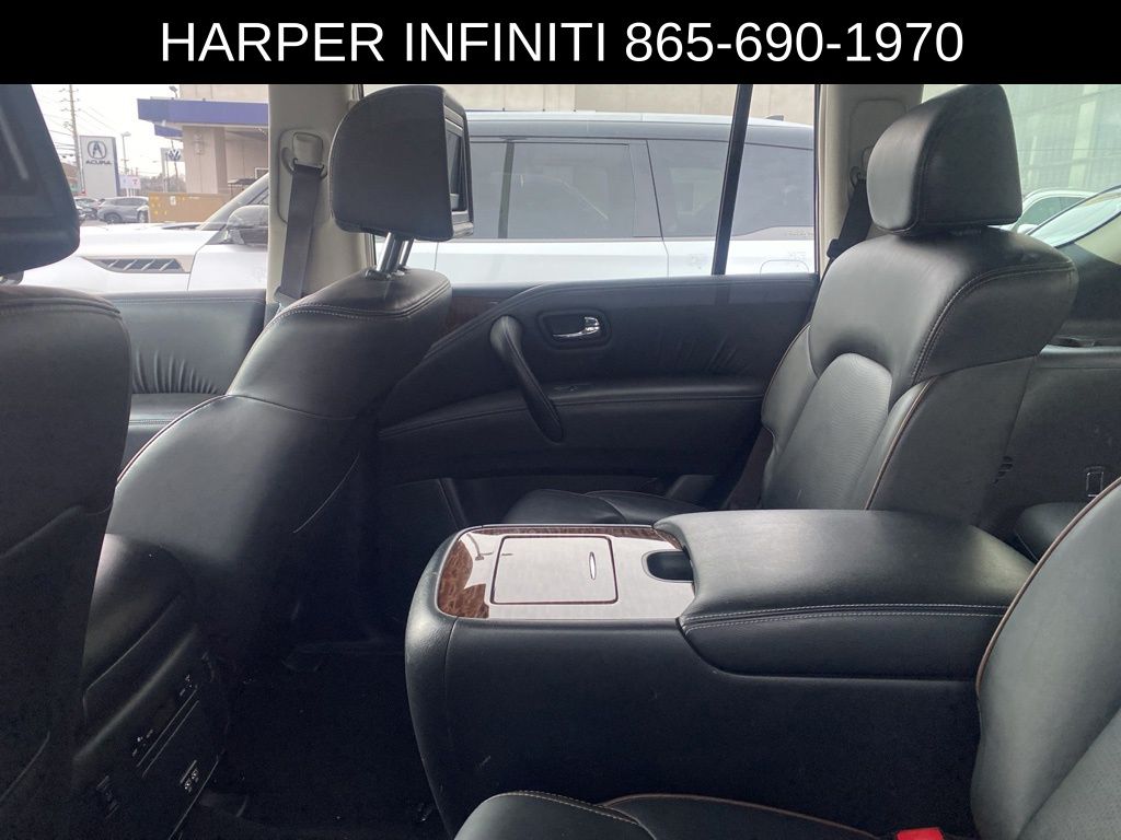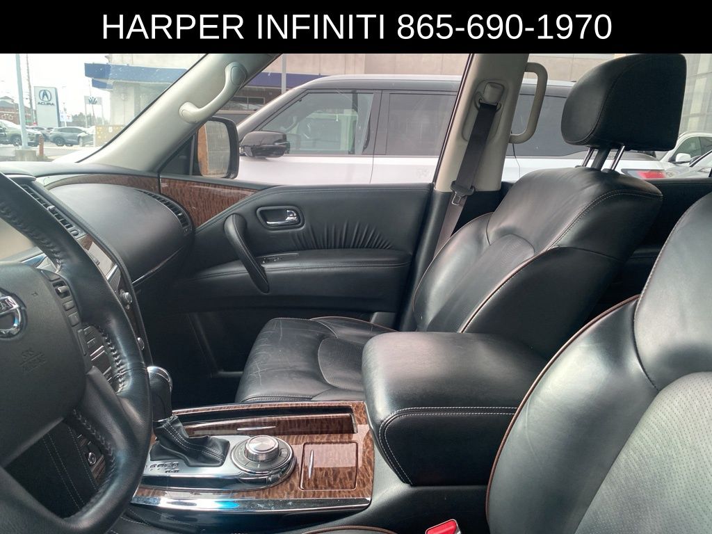 Harper INFINITI is pumped up to offer this great-looking 2017 Nissan Armada in Super Black HARPER INFINITI believes in the quality of the vehicles we sell so well that we provide an UNLIMITED MILES, POWERTRAIN WARRANTY on every new and qualifying pre-owned vehicle it sells!!! This warranty is good at any ASE certified shop in the 48 continental United States!! Check out all these great options Captain Seat Package (Second Row Captain's Chairs and Second Row Center Console w/ Padded Armrest), Navigation System, 13 Speakers, 2.937 Axle Ratio, 3rd row seats: split-bench, 4-Wheel Disc Brakes, A/V remote, ABS brakes, Air Conditioning, Alloy wheels, AM/FM radio: SiriusXM, Anti-whiplash front head restraints, Auto tilt-away steering wheel, Auto-dimming door mirrors, Auto-dimming Rear-View mirror, Auto-leveling suspension, Automatic temperature control, Brake assist, Bumpers: body-color, CD player, Delay-off headlights, Driver door bin, Driver vanity mirror, Dual front impact airbags, Dual front side impact airbags, Electronic Stability Control, Four wheel independent suspension, Front anti-roll bar, Front Bucket Seats, Front Center Armrest, Front dual zone A/C, Front fog lights, Front reading lights, Fully automatic headlights, Garage door transmitter: HomeLink, Headphones, Heated & Cooled Front Bucket Seats, Heated door mirrors, Heated front seats, Heated rear seats, Heated steering wheel, Illuminated entry, Lane Departure Warning System, Leather Shift Knob, Leather-Appointed Seat Trim, Low tire pressure warning, Memory seat, Occupant sensing airbag, Outside temperature display, Overhead airbag, Overhead console, Panic alarm, Passenger door bin, Passenger vanity mirror, Power door mirrors, Power driver seat, Power moonroof, Power passenger seat, Power steering, Power windows, Radio data system, Radio: Bose AM/FM/SXM/CD/MP3 Audio System, Rain sensing wipers, Rear air conditioning, Rear anti-roll bar, Rear reading lights, Rear seat center armrest, Rear window defroster, Rear window wiper, Reclining 3rd row seat, Remote keyless entry, Roof rack: rails only, Security system, Speed control, Speed-sensing steering, Speed-Sensitive Wipers, Split folding rear seat, Steering wheel mounted audio controls, Tachometer, Telescoping steering wheel, Tilt steering wheel, Traction control, Trip computer, Turn signal indicator mirrors, Variably intermittent wipers, Ventilated front seats, Voltmeter, and Wheels: 20" Machine-Faced Chrome w/Tinted CC.