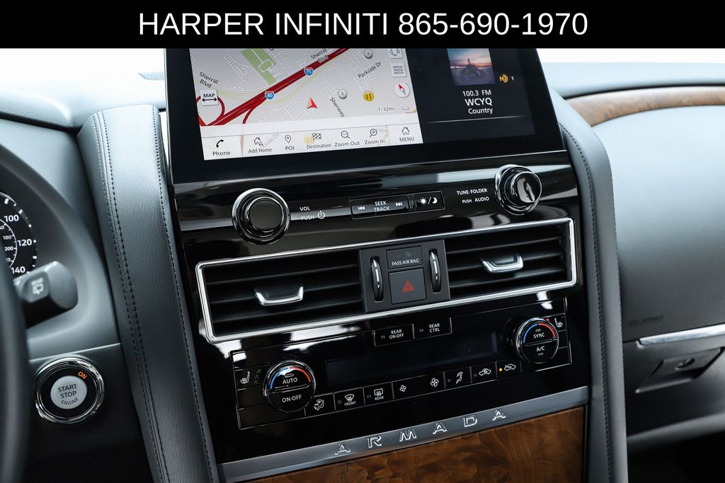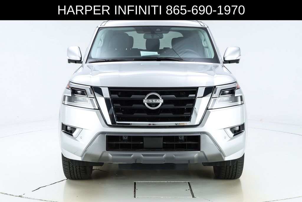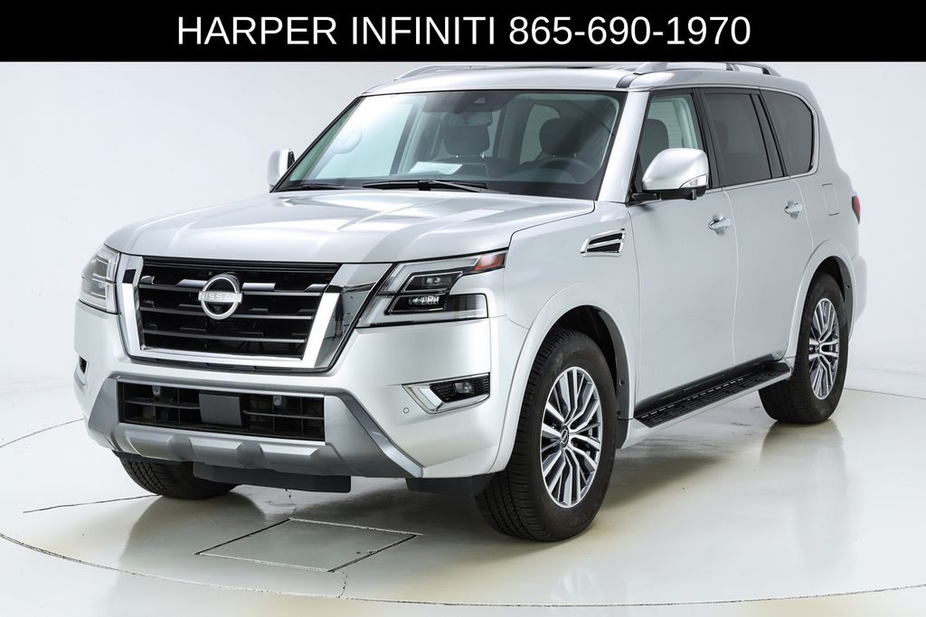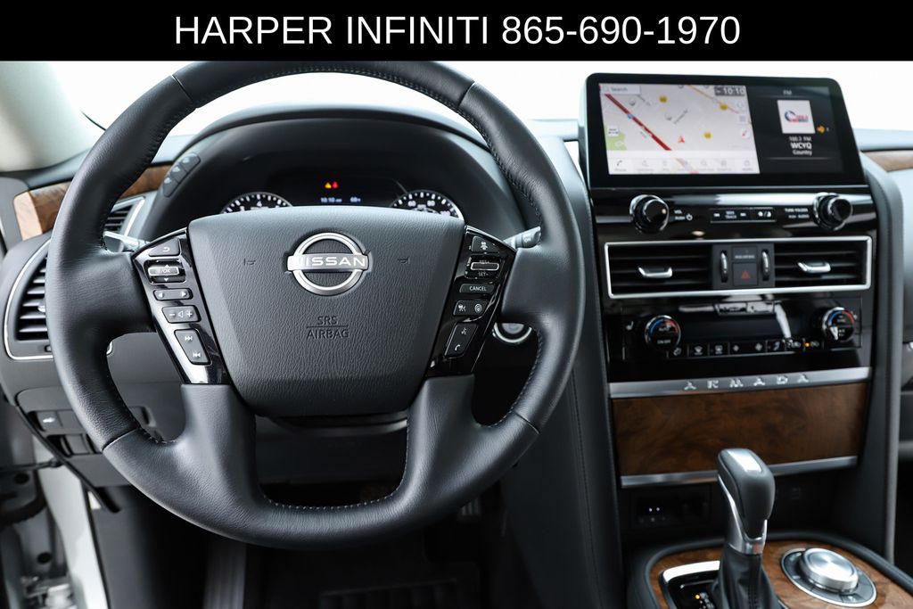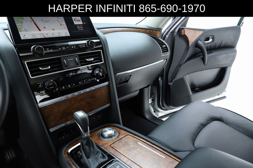 Harper Infiniti is excited to offer this impressive 2024 Nissan Armada SL in Silver. HARPER INFINITI believes in the quality of the vehicles we sell so well that we provide an UNLIMITED MILES, POWERTRAIN WARRANTY on every new and qualifying pre-owned vehicle it sells!!! This warranty is good at any ASE certified shop in the 48 continental United States!! Check out all these great options: Navigation System, 13 Speakers, AM/FM radio: SiriusXM, Radio: NissanConnect w/SiriusXM, Air Conditioning, Automatic temperature control, Front dual zone A/C, HVAC memory, Rear air conditioning, Rear window defroster, Memory seat, Power driver seat, Power steering, Power windows, Remote keyless entry, Steering wheel memory, Steering wheel mounted audio controls, Auto-leveling suspension, Four wheel independent suspension, Speed-sensing steering, Traction control, 4-Wheel Disc Brakes, ABS brakes, Anti-whiplash front head restraints, Dual front impact airbags, Dual front side impact airbags, Emergency communication system: NissanConnect Services, Front anti-roll bar, Knee airbag, Low tire pressure warning, Occupant sensing airbag, Overhead airbag, Rear anti-roll bar, Power moonroof, Power Liftgate, Brake assist, Electronic Stability Control, Exterior Parking Camera Rear, Auto High-beam Headlights, Delay-off headlights, Front fog lights, Fully automatic headlights, Panic alarm, Security system, Speed control, Auto-dimming door mirrors, Bumpers: body-color, Heated door mirrors, Power door mirrors, Spoiler, Turn signal indicator mirrors.