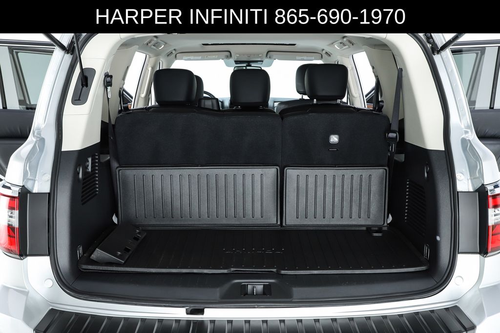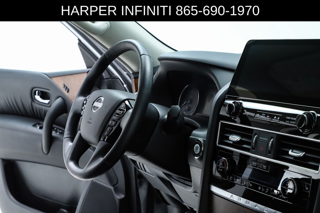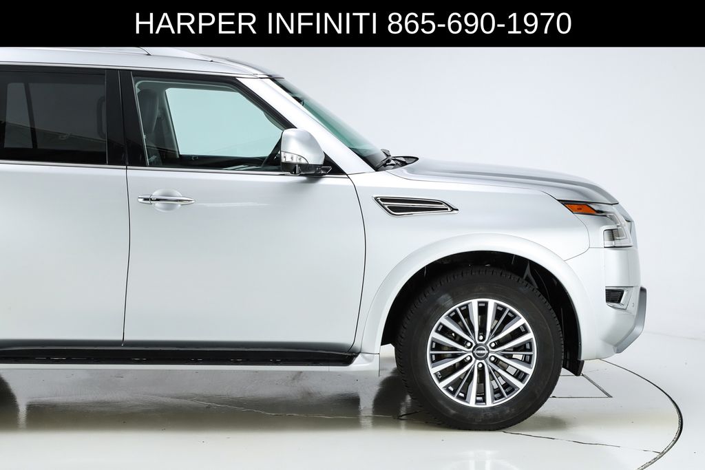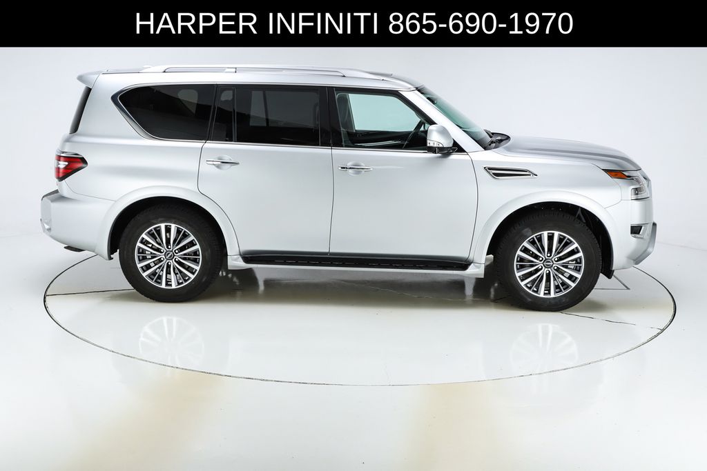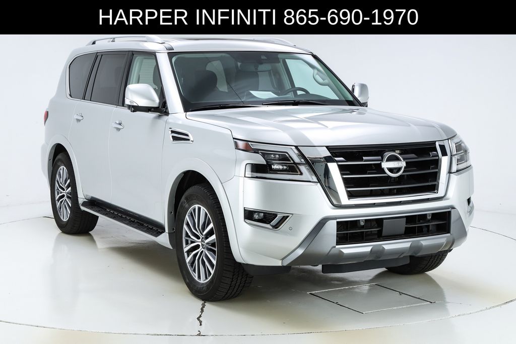 Harper Infiniti is excited to offer this impressive 2024 Nissan Armada SL in Silver. HARPER INFINITI believes in the quality of the vehicles we sell so well that we provide an UNLIMITED MILES, POWERTRAIN WARRANTY on every new and qualifying pre-owned vehicle it sells!!! This warranty is good at any ASE certified shop in the 48 continental United States!! Check out all these great options: Navigation System, 13 Speakers, AM/FM radio: SiriusXM, Radio: NissanConnect w/SiriusXM, Air Conditioning, Automatic temperature control, Front dual zone A/C, HVAC memory, Rear air conditioning, Rear window defroster, Memory seat, Power driver seat, Power steering, Power windows, Remote keyless entry, Steering wheel memory, Steering wheel mounted audio controls, Auto-leveling suspension, Four wheel independent suspension, Speed-sensing steering, Traction control, 4-Wheel Disc Brakes, ABS brakes, Anti-whiplash front head restraints, Dual front impact airbags, Dual front side impact airbags, Emergency communication system: NissanConnect Services, Front anti-roll bar, Knee airbag, Low tire pressure warning, Occupant sensing airbag, Overhead airbag, Rear anti-roll bar, Power moonroof, Power Liftgate, Brake assist, Electronic Stability Control, Exterior Parking Camera Rear, Auto High-beam Headlights, Delay-off headlights, Front fog lights, Fully automatic headlights, Panic alarm, Security system, Speed control, Auto-dimming door mirrors, Bumpers: body-color, Heated door mirrors, Power door mirrors, Spoiler, Turn signal indicator mirrors.