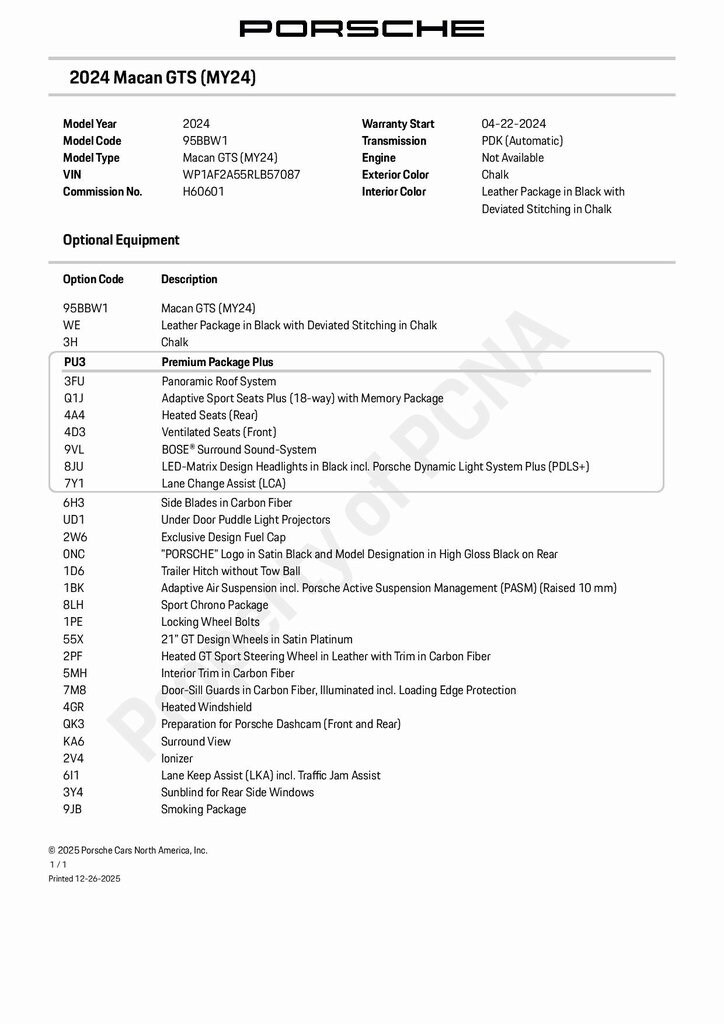 Our Pre-Owned vehicles are priced to market, making the transaction as transparent and hassle-free as possible. Inspected by our Porsche Certified technicians with Transferable Porsche Certified Pre-Owned warranty coverage valid until 4/21/2030! Dealer not responsible for automated VIN populated options list. Buyer to verify specs with Sales Consultant. Please call Harper Porsche for details (865) 934-2828 or visit us online at www.harperporsche.com. Come see why Harper has the easiest car buying experience in the South!
