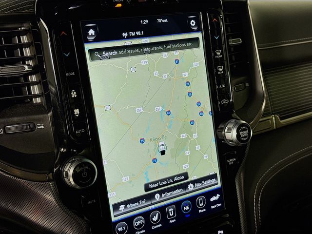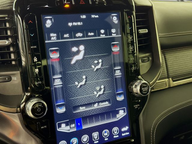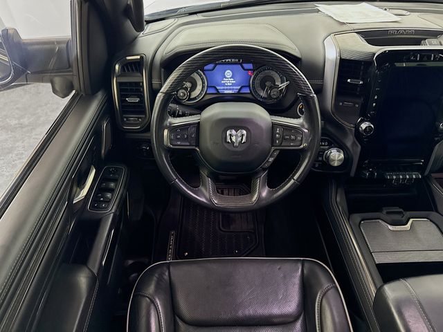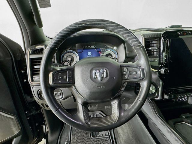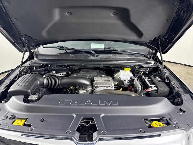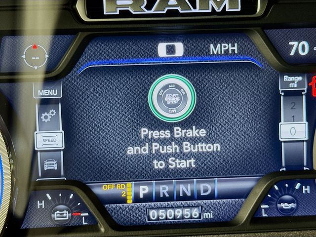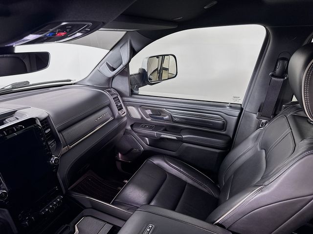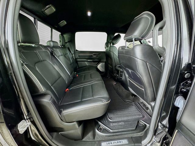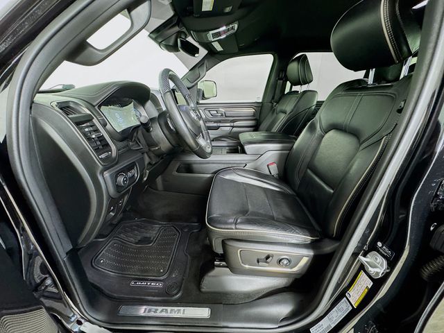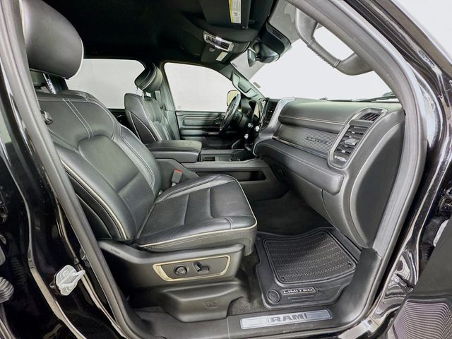 The chrome power-fold trailer tow mirrors and the Protection Group, which includes skid plates for the transfer case, steering gear, front suspension, and fuel tank, ensure that this Ram 1500 Limited is ready to tackle any adventure, whether it's towing a heavy load or navigating rugged terrain.