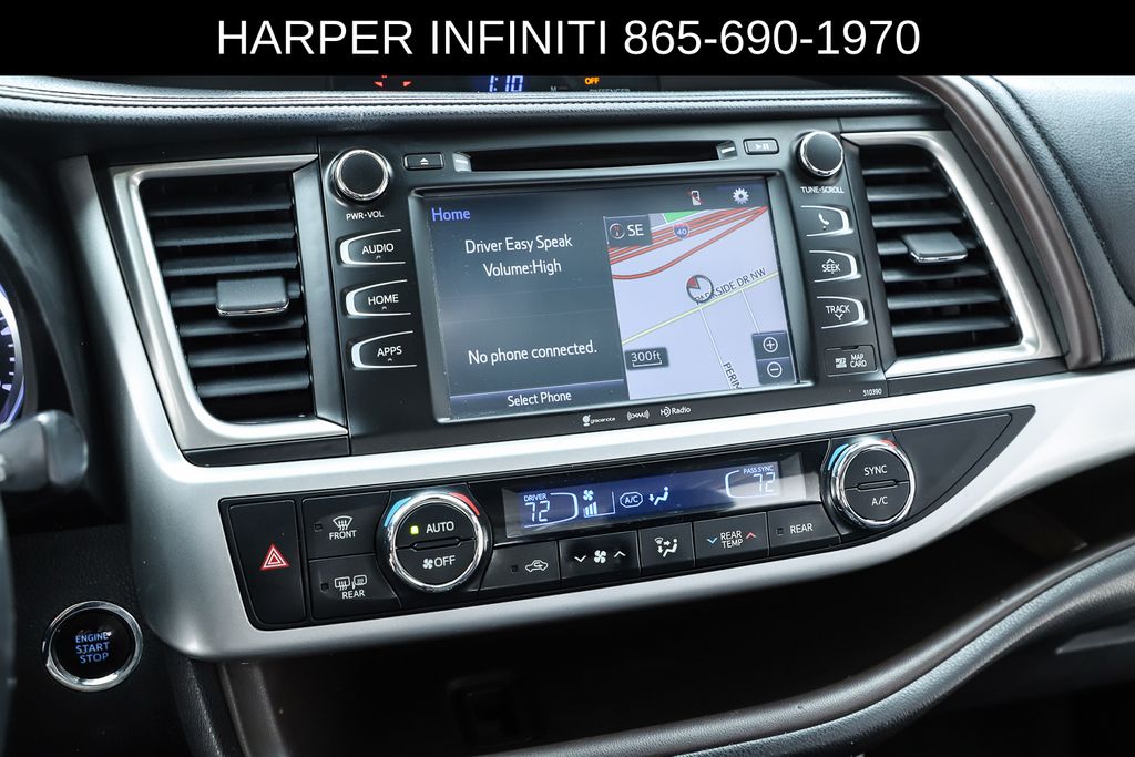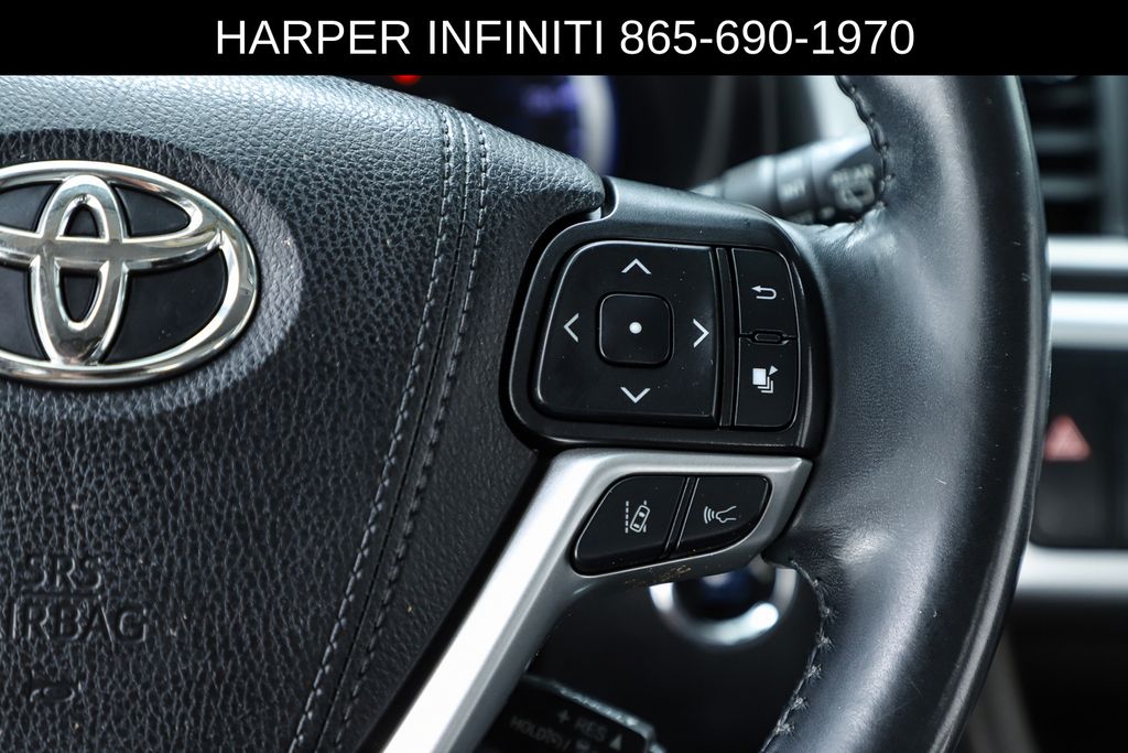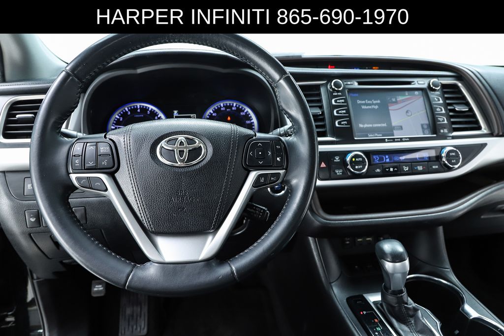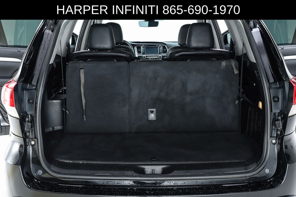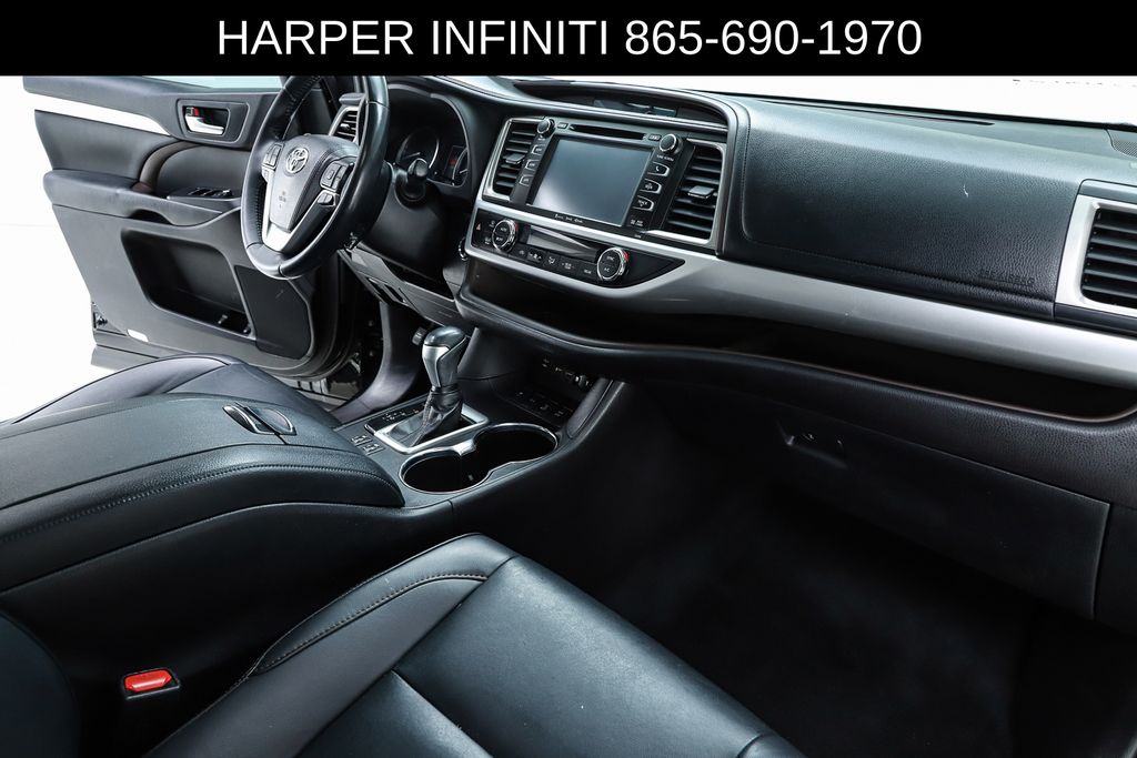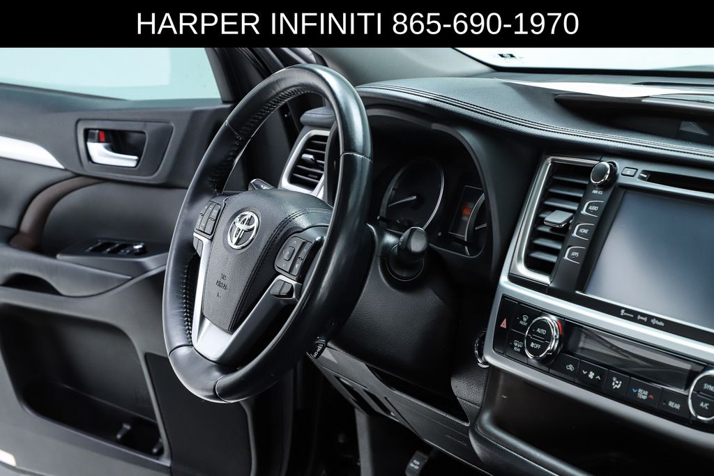 Harper INFINITI is pumped up to offer this good-looking 2019 Toyota Highlander in Midnight Black Metallic HARPER INFINITI believes in the quality of the vehicles we sell so well that we provide an UNLIMITED MILES, POWERTRAIN WARRANTY on every new and qualifying pre-owned vehicle it sells!!! This warranty is good at any ASE certified shop in the 48 continental United States!! Check out all these great options ABS brakes, Active Cruise Control, Alloy wheels, Electronic Stability Control, Front dual zone A/C, Heated door mirrors, Heated Front Bucket Seats, Heated front seats, Illuminated entry, Leather Seat Trim, Low tire pressure warning, Navigation System, Power Liftgate, Power moonroof, Remote keyless entry, Traction control, 3.003 Axle Ratio, 3rd row seats: split-bench, 4-Wheel Disc Brakes, 6 Speakers, Air Conditioning, AM/FM radio: SiriusXM, Auto High-beam Headlights, Auto-dimming Rear-View mirror, Automatic temperature control, Brake assist, Bumpers: body-color, CD player, Delay-off headlights, Driver door bin, Driver vanity mirror, Dual front impact airbags, Dual front side impact airbags, Exterior Parking Camera Rear, Four wheel independent suspension, Front anti-roll bar, Front Bucket Seats, Front Center Armrest, Front fog lights, Front reading lights, Fully automatic headlights, Garage door transmitter, Knee airbag, Leather Shift Knob, Occupant sensing airbag, Outside temperature display, Overhead airbag, Overhead console, Panic alarm, Passenger door bin, Passenger vanity mirror, Power door mirrors, Power driver seat, Power passenger seat, Power steering, Power windows, Radio: Entune Premium Audio w/Nav & App Suite, Rear air conditioning, Rear anti-roll bar, Rear reading lights, Rear window defroster, Rear window wiper, Reclining 3rd row seat, Roof rack: rails only, Security system, Speed control, Speed-sensing steering, Split folding rear seat, Spoiler, Steering wheel mounted audio controls, Tachometer, Telescoping steering wheel, Tilt steering wheel, Trip computer, Turn signal indicator mirrors, Variably intermittent wipers, and Wheels: 18" Turbine-Look Alloy.