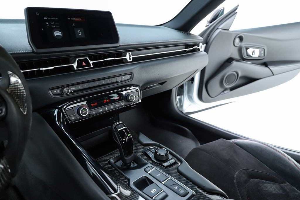 Check out all these great options 10 Speakers, 4-Wheel Disc Brakes, ABS brakes, Adaptive suspension, Air Conditioning, Alcantara/Leather Seat Trim, Alloy wheels, AM/FM radio: SiriusXM, Auto-dimming door mirrors, Auto-dimming Rear-View mirror, Automatic temperature control, Bumpers: body-color, Child-Seat-Sensing Airbag, Dual front impact airbags, Dual front side impact airbags, Four wheel independent suspension, Front anti-roll bar, Front dual zone A/C, Front Sport Seats, Fully automatic headlights, Garage door transmitter: HomeLink, Heated door mirrors, Knee airbag, Leather Shift Knob, Leather steering wheel, Low tire pressure warning, Memory seat, Occupant sensing airbag, Overhead airbag, Panic alarm, Power door mirrors, Power driver seat, Power passenger seat, Power steering, Power windows, Radio data system, Radio: 205-Watt AM/FM Stereo w/10 Speakers, Rear anti-roll bar, Rear window defroster, Remote keyless entry, Security system, Speed-Sensitive Wipers, Steering wheel mounted audio controls, Tachometer, Telescoping steering wheel, Tilt steering wheel, Traction control, Trip computer, Variably intermittent wipers, Wheels: 19" Forged Aluminum w/Painted Accents, Auto High-beam Headlights, Brake assist, Delay-off headlights, Driver door bin, Driver vanity mirror, Electronic Stability Control, Exterior Parking Camera Rear, Front Bucket Seats, Front Center Armrest, Front fog lights, Front reading lights, Illuminated entry, Outside temperature display, Passenger door bin, Passenger vanity mirror, Radio: 500-Watt AM/FM JBL Audio w/12 Speakers, Rain sensing wipers, Speed control, Speed-sensing steering, and Turn signal indicator mirrors. Harper Maserati is pumped up to offer this good-looking 2021 Toyota Supra in Tungsten This vehicle has passed our comprehensive inspection and comes with the following features;