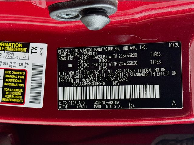 - Front tires: 235/55VR20.0
