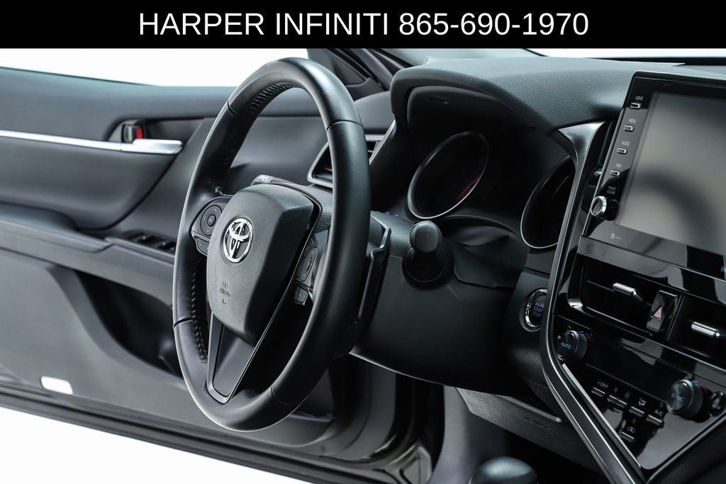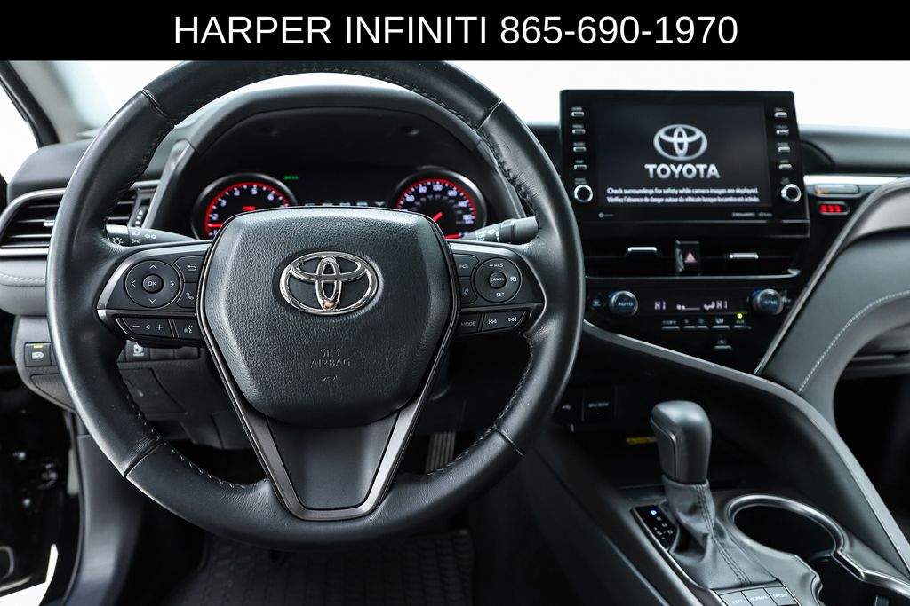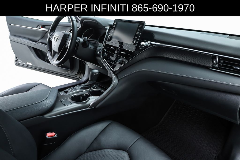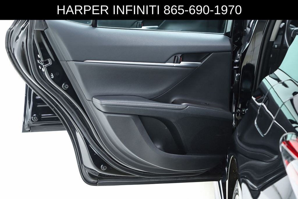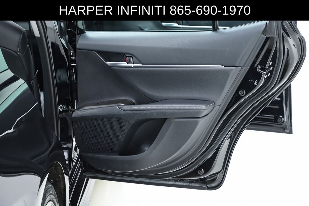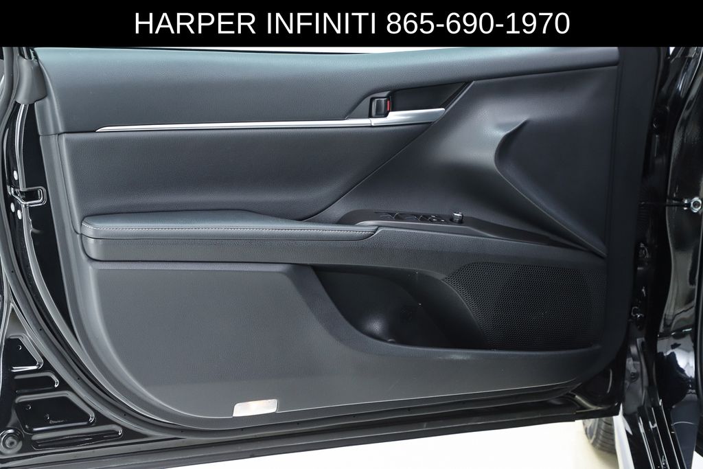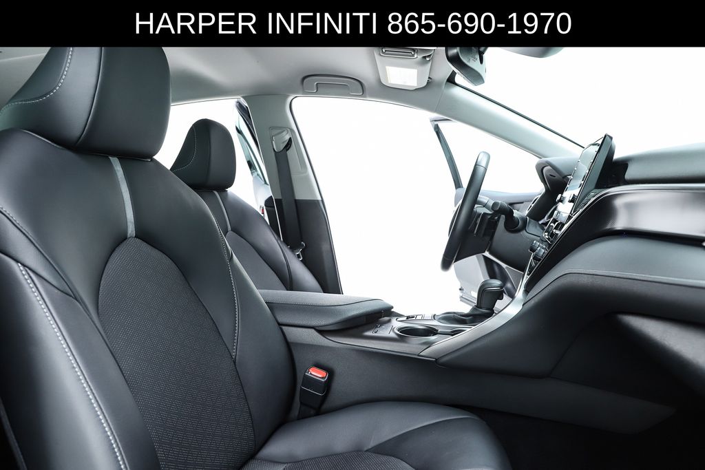 Harper INFINITI is proud to offer this good-looking 2023 Toyota Camry in Midnight Black Metallic HARPER INFINITI believes in the quality of the vehicles we sell so well that we provide an UNLIMITED MILES, POWERTRAIN WARRANTY on every new and qualifying pre-owned vehicle it sells!!! This warranty is good at any ASE certified shop in the 48 continental United States!! Check out all these great options 4-Wheel Disc Brakes, 6 Speakers, ABS brakes, Air Conditioning, Alloy wheels, AM/FM radio: SiriusXM, Apple CarPlay/Android Auto, Auto High-beam Headlights, Auto-dimming Rear-View mirror, Automatic temperature control, Brake assist, Bumpers: body-color, Delay-off headlights, Driver door bin, Driver vanity mirror, Dual front impact airbags, Dual front side impact airbags, Electronic Stability Control, Emergency communication system: Safety Connect (1-year trial), Exterior Parking Camera Rear, Four wheel independent suspension, Front anti-roll bar, Front Bucket Seats, Front Center Armrest, Front dual zone A/C, Front reading lights, Fully automatic headlights, Garage door transmitter: HomeLink, Heated door mirrors, Heated front seats, Illuminated entry, Knee airbag, Leather steering wheel, Low tire pressure warning, Multi-Stage Heated Front Bucket Seats, Occupant sensing airbag, Outside temperature display, Overhead airbag, Overhead console, Panic alarm, Passenger door bin, Passenger vanity mirror, Perforated Leather Seat Trim, Power door mirrors, Power driver seat, Power passenger seat, Power steering, Power windows, Radio data system, Radio: Audio Plus, Rear anti-roll bar, Rear reading lights, Rear seat center armrest, Rear side impact airbag, Rear window defroster, Remote keyless entry, Security system, Speed control, Speed-sensing steering, Split folding rear seat, Spoiler, Steering wheel mounted audio controls, Tachometer, Telescoping steering wheel, Tilt steering wheel, Traction control, Trip computer, Turn signal indicator mirrors, Variably intermittent wipers, and Wheels: 8.0J x 19" Alloy.