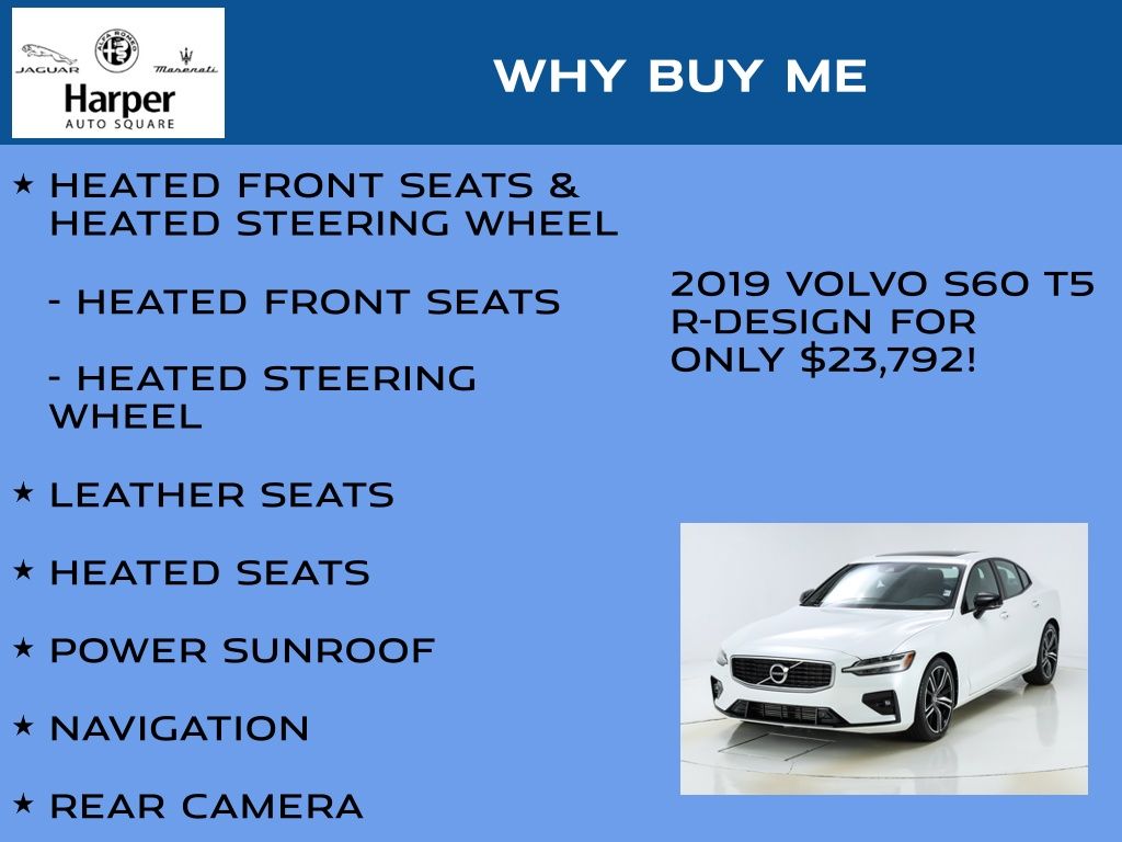 This exceptional 2019 Volvo S60 T5 R-Design is a true testament to the brand's commitment to craftsmanship and innovation. Experience the epitome of Scandinavian design and engineering by scheduling a test drive today. We're confident this captivating sedan will exceed your expectations and inspire your next chapter of driving enjoyment.
